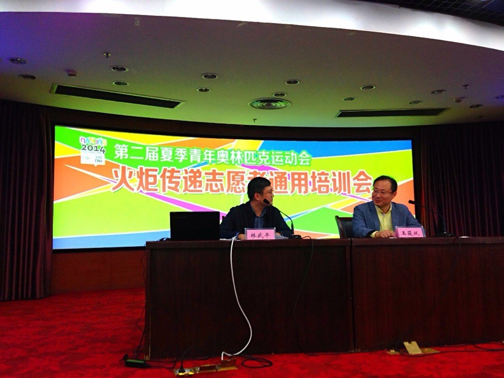 我校45名火炬传递志愿者同学参加了本次第二届夏季青奥会火炬传递志愿服务培训。志愿者们参加了《青奥会与志愿精神》、《心理调试》、《南京历史文化生活》、《赛会英语》、《文明礼仪》的集中通用培训学习。