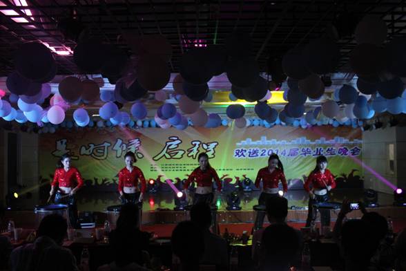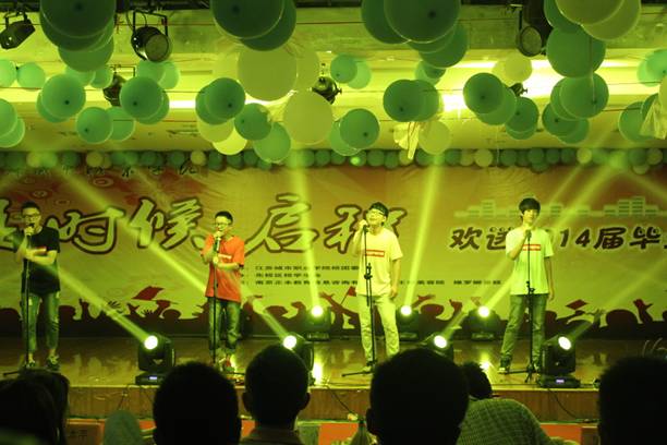 本次毕业生晚会座无虚席,场面热烈,青春活力。无论从现场布置到节目安排都凝聚了对毕业生的不舍和对他们未来的祝福。晚会首先由热力四射、动感无限水鼓舞《青春节奏》拉开序幕;紧接着就是对比强烈,颇具视觉冲击力的舞蹈《穿越金陵》和《Dance Queen》让观众不仅领略了舞者烟雨江南的古典美也体味到热情活泼的现代美;而一曲男声小合唱《当》述说了大学浓浓的友谊和离别的不舍,在场的观众无不被演员的情绪感动;远道而来的三江学院学生会还专门送来了Max乐队的精彩演出,引爆了晚会第一个高潮。紧随其后的充满青春正能量的诗朗诵《少年中国说》令人精神振奋、热血沸腾。本次晚会还特别邀请了优秀毕业生发言,短短的3分钟发言让在场的每位同学在感恩老师的教诲、同学帮助的同时更明白了青春经不起等待,梦想要付诸行动。话剧《我的中国梦》、现代舞《共筑未来》使晚会主题得到升华。最后当《是时候启程》的歌声响起,晚会的气氛达到最高点,会场中各种感动在弥漫,有离别的伤感,也有对未来的彼此祝福,有的同学在欢呼,有的同学在流泪,有的同学在拥抱······是时候启程,同学走好,未来的日子里祝愿一路顺风。