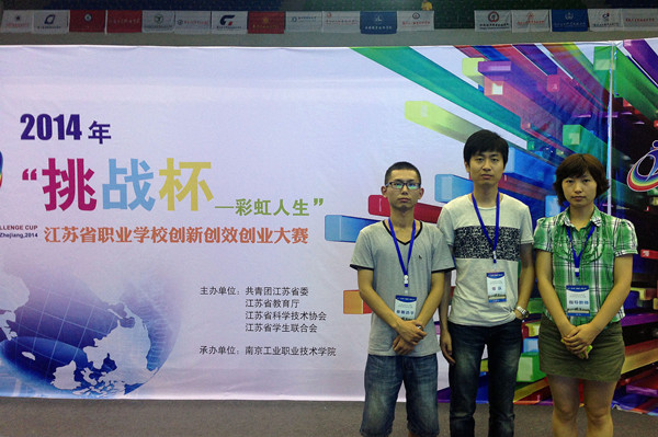 7月13日晚,2014年“挑战杯——彩虹人生”江苏省职业学校创新创效创业大赛终审决赛在南京工业职业技术学院落下帷幕。由我校团委选送的传媒艺术系王伦根同学的《创意生活馆》获得二等奖。