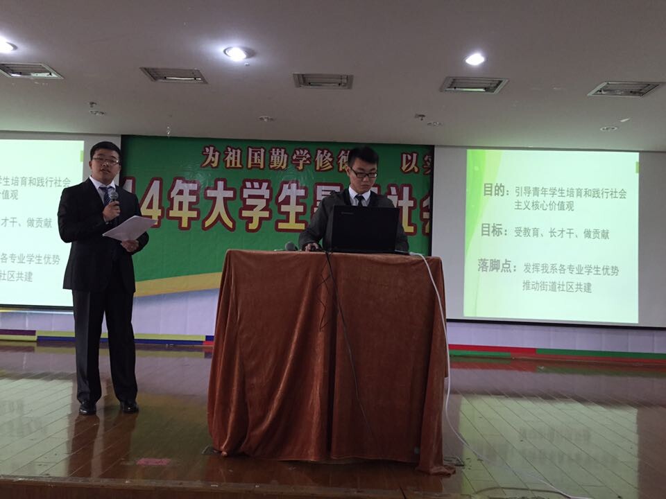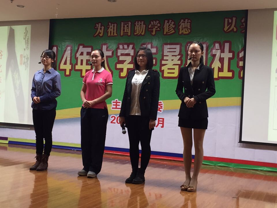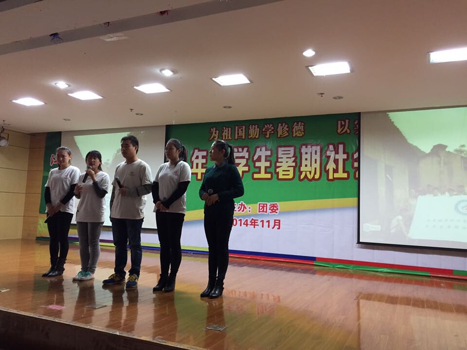 11月19日,我校2014年大学生暑期社会实践成果分享会在东校区大学生活动中心举行,全校6个重点团队参加了分享汇报和现场答辩。党委副书记,副校长金南冬和相关部门负责人以及系部党总支书记参加了活动并担任了评委。 汇报会上,各重点团队通过PPT、视频等形式从实践活动的前期准备、开展情况、取得成效、社会反响、心得体会等方面汇报了相关情况,并现场回答了评委们的提问。整个汇报会气氛热烈,我校青年学子暑期社会实践的足迹遍布全国各地,社会实践真正成为了大学生“受教育、长才干、做贡献”的青春舞台。 经过两个半小时紧张激烈的角逐,2014暑期社会实践成果汇报在一片热烈的氛围中结束,由建筑工程系选送的“南丹情、爱支教”小分队获得一等奖;由外语系选送的“博物馆小青柠”小分队获得二等奖;由信息工程系选送的“深入校友感知就业,企业调研服务教学”小分队获得了三等奖。