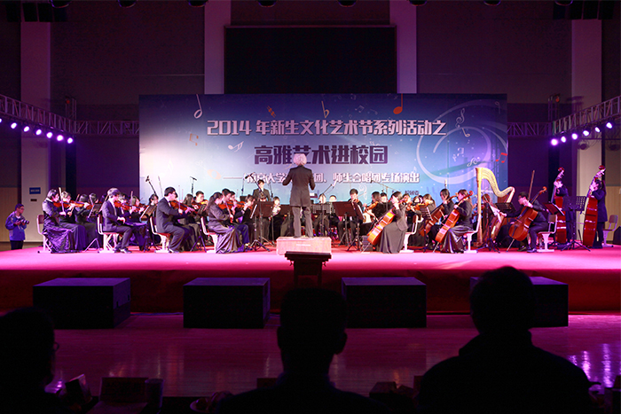 12月2日晚,我校新生文化艺术节系列活动之——南京大学交响乐团、合唱团专场音乐会在我校应天校区体艺馆上演,校党委副书记,副校长金南冬、副校长兰亚明出席音乐会与2000多名师生共同观看了演出。