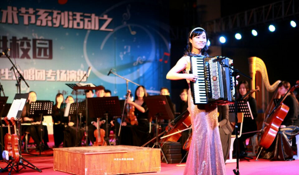 南大交响乐团、合唱团的师生们将他们精心排练的10个中外交响乐和合唱作品,奉献给了我们学校。晚会由关峡的《第一交响曲》拉开了序幕,期间演奏了约翰奈斯•勃拉姆斯的《匈牙利舞曲》以及中国作曲家王酩的《织网》和《丰收》等曲目,演出在指挥家精湛娴熟的技艺下流畅优雅的进行着,每个曲子的结束,观众都报以热烈的掌声。尤其是手风琴协奏曲《夏娃的波尔卡》将演出的气氛推向了高潮,观众的心情随音乐翻动,久久难以平静。最后,演出在《我的祖国》的铿锵旋律中激情落幕。