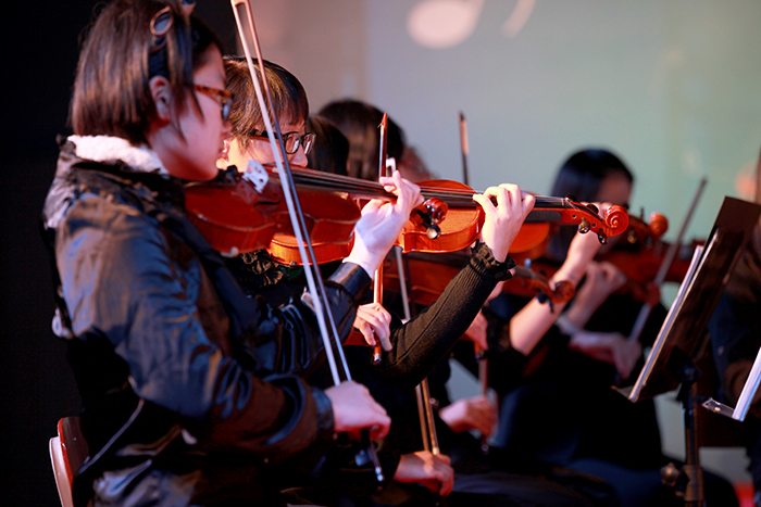 本次专场音乐会由青年指挥家吕晓一老师执棒。从最基础的乐理、乐器知识,到高雅艺术的展示,从交响乐队的组成,到各个声部的配合,再到各种乐器的音色特征、情绪特征,吕晓一老师一一进行了详尽诙谐的讲解,并且从专业的角度热情地讲解了演出曲目。在演出现场,台上台下互动融合,氛围热烈。