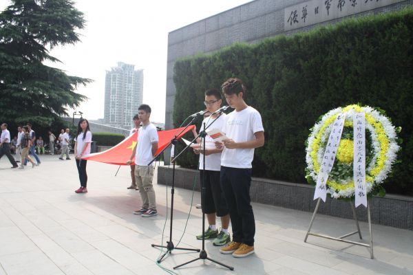 活动中,来自苏港青年交流促进会和南京航空航天大学的2名同学代表面向国旗宣读《缅怀历史·共筑梦想》和平倡议书,充分表达了对历史教训的深刻感悟和追求和平的美好愿望。