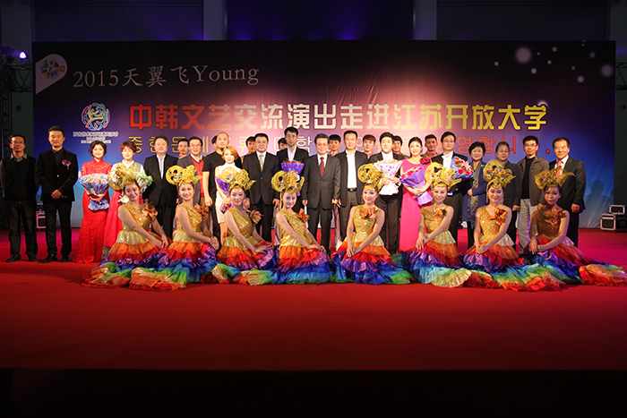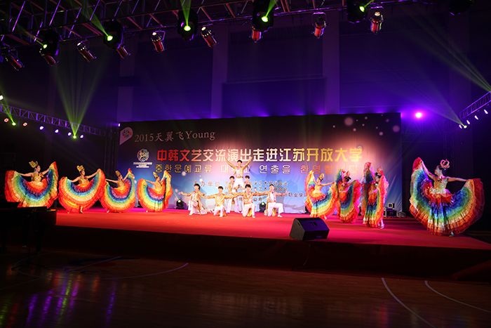 金南冬代表我校致欢迎词,他指出,中韩艺术交流演出对校园文化建设产生了积极的推动作用。江苏开放大学既要注重向世界各国的开放大学和教研机构学习,又要重视把国外的先进教育理念和技术以及优秀的文化艺术请进来,兼收并蓄,进一步加强学校文化建设。