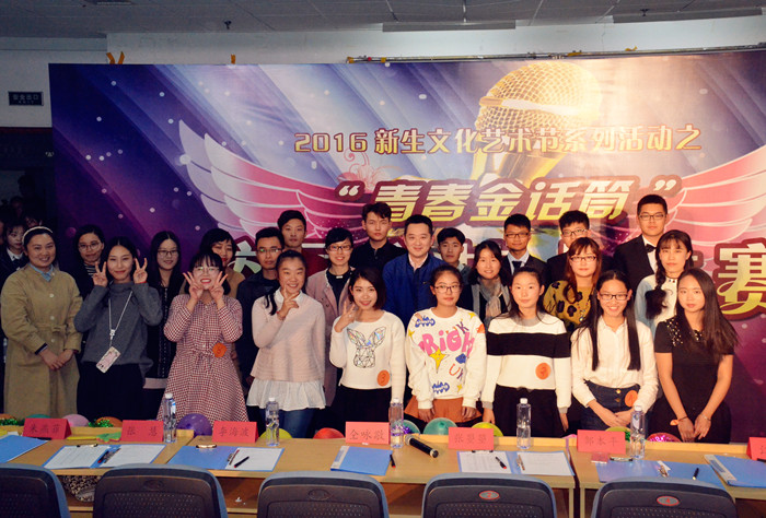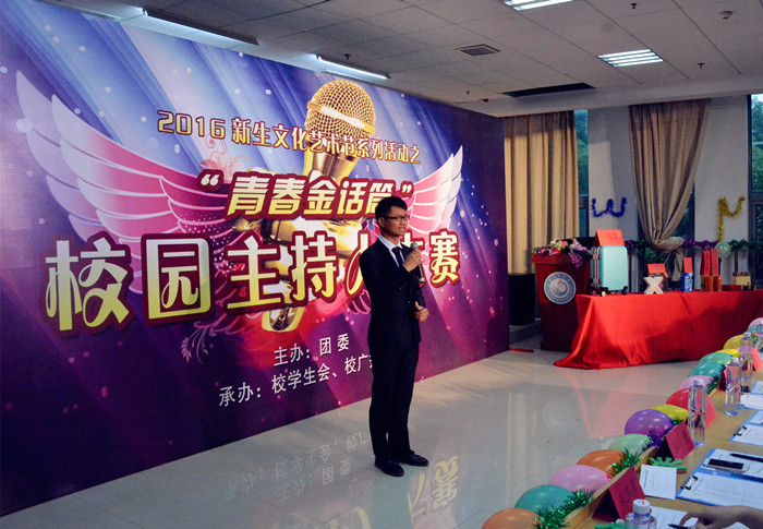 11月9日中午,由校团委主办,校学生会、校广播站承办的2016新生文化艺术节“青春金话筒”主持人决赛在我校应天校区成功举办。担任本次大赛的评委有《法制现场》《南京教育头条》新闻主播仝咏敬、校团委副书记张曌曌、商学院团总支书记张慧、信工院团总支书记李海波、建工院团总支书记江蕾、国教院团总支书记邹本平、环生院团总支书记张乃文、健康院团总支书记朱燕菲、校团委费杨、蒋敏。