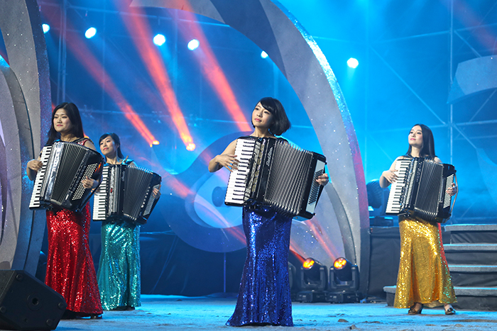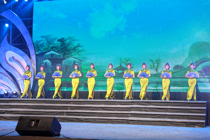 晚会围绕学校LOGO中的凤凰进行设计,主题为“梧桐苏韵•丹凤朝阳”,分别由“有凤来仪”、“凤凰涅槃”、“凤舞九天”、“凤凰展翅”四个篇章构成。通过vcr展示和节目汇演向全社会展示了我校的办学理念、发展方向以及我校文化建设的丰硕成果。晚会共有17个节目组成,共约400个演员参加了演出。这些节目均是文化艺术节各项比赛的获奖作品,每一个节目的登台都收到全场观众的热情鼓掌。晚会过程中学校领导、活动嘉宾以及市县校领导分别为文化艺术节的各奖项进行了现场颁奖。