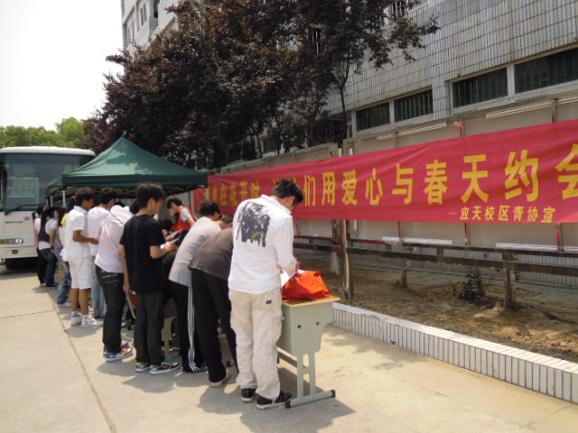 应天校区:积极献血的同学们