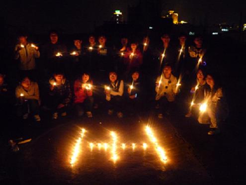 校园熄灯一小时活动,并向地震遇难同胞默哀,同时为世界和平祈福