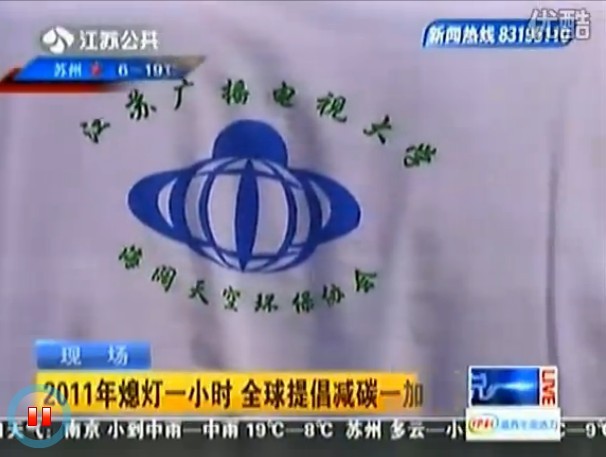 海阔天空环保协会参加地球一小时活动,并向媒体展示协会会旗
