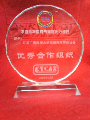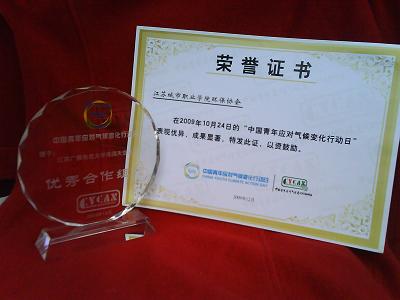 “中国青年应对气候变化行动日”授予环协“优秀合作组织”奖杯