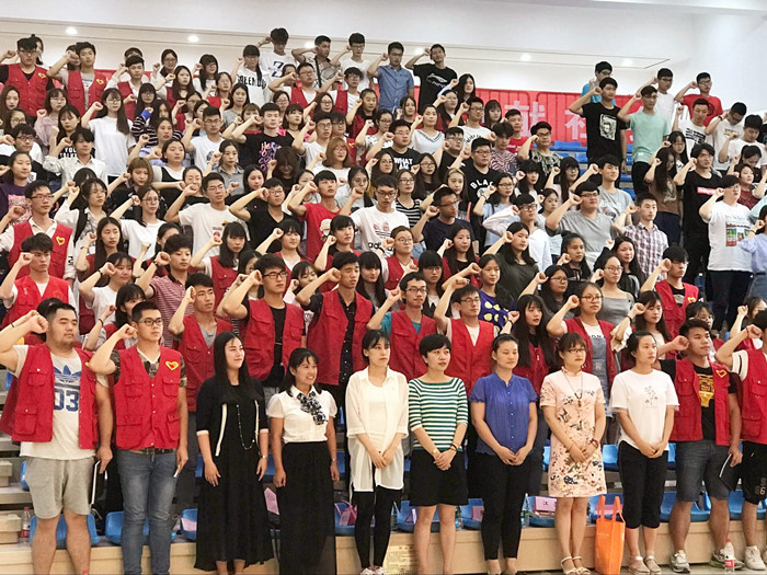 2017年7月3日中午,我校在应天校区体艺馆4楼报告厅举行了2017年暑期“三下乡”社会实践出征仪式,校长崔新有,校党委副书记、副校长金丽霞出席仪式。党委宣传部、学工处、团委、各学院主要负责人、各学院团总支负责人以及各学院社会实践300名学生代表参加。出征仪式由团委书记邹佳主持。