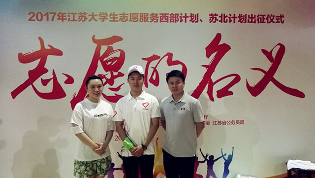 7月20 日下午,江苏省2017西部计划、苏北计划大学生志愿者出征仪式在南京林业大学体育馆举行,中共江苏省委杨根平副秘书长、共青团江苏省委王伟书记、团中央领导及省委组织部、省教育厅、省财政厅、省人社厅、团省委、省公务员局等相关部门领导及全省700多名志愿者出席了本次出征仪式。我校参加2017年苏北计划的大学生志愿者郝帅在校团委老师及张家港办学点团委老师的带领下参加了出征仪式。
