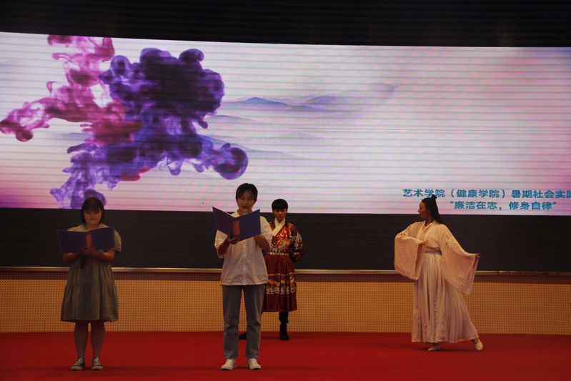为全面总结我校暑期社会实践活动成果,将暑期社会实践活动的意义延伸到青年学生的学习生活中去,9月24日, 2020年大学生暑期社会实践成果分享会在应天校区体艺馆举行,来自办学系统的无锡开放大学团队、六个学院的共12支特色团队以及校团委实践团队通过多种形式为到场的学生展示了一场别开生面的分享会。社会教育处、学生工作处、团委以及各学院党、团总支负责人参加了活动。