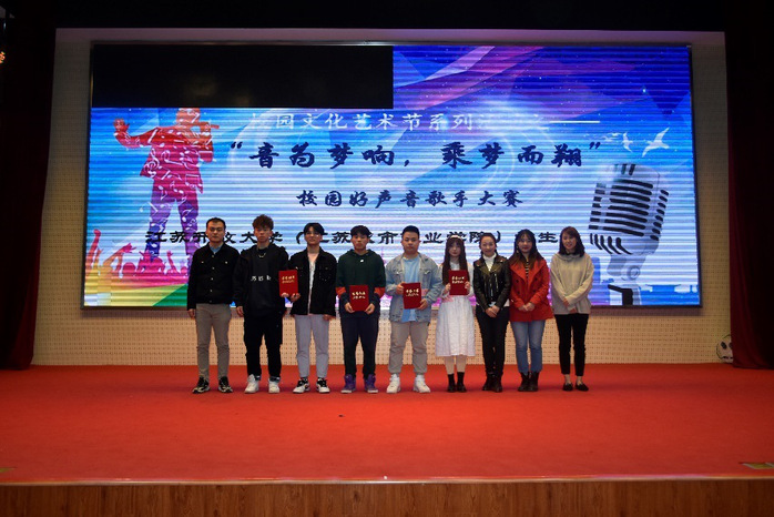 2020年11月20日18点30分,江苏开放大学(江苏城市职业学院)学生会主办的校园文化艺术节系列活动之“音为梦响,乘梦而翔”校园好声音歌手大赛,在体艺馆406拉开帷幕。校团委副书记尹星、艺术学院党委副书记张洁、商学院团总支书记吴轲威、信息工程学院团总支书记彭晓、环境生态学院团总支副书记陈涛涛、设计学院团总支书记魏若思、校团委全体老师以及建筑工程学院汪博恺老师担任此次比赛的评委。