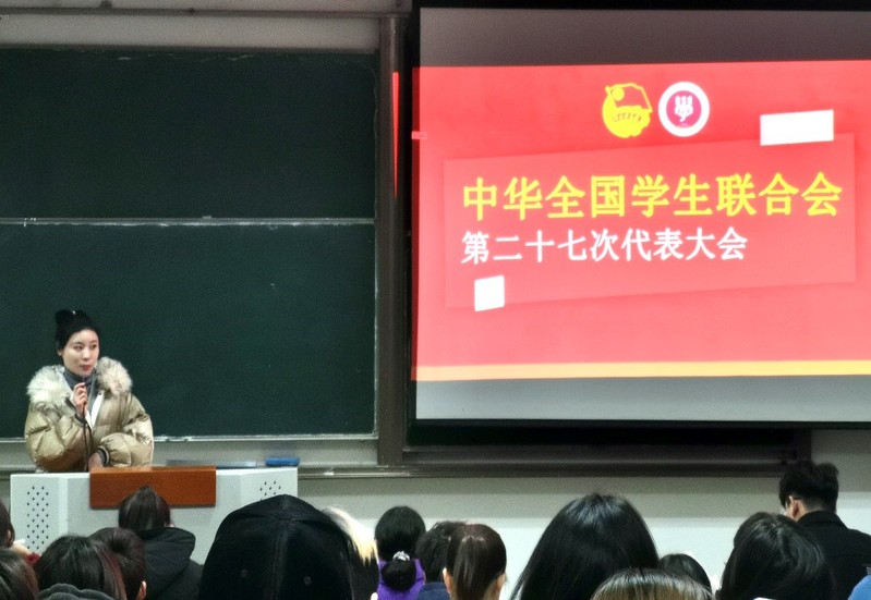 11月23日晚,我校召开了关于学习《全国学联二十七大习近平总书记贺信和党中央致词精神》《中华全国青年联合会章程》《关于学联学生会工作人员改进作风服务同学》的宣传会议暨干部换届仪式,校团委宋敏老师出席并主持,校级学生会全体成员参加会议。