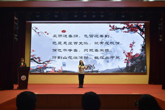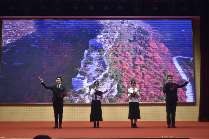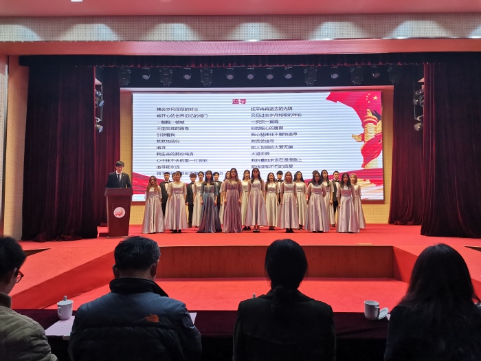 为展示我校青年学生“学习四史诵经典,不负青春担使命”的良好素质,12月1日晚,校团委(大学生艺术中心)在应天校区体艺馆举办信仰公开课——“学四史 颂经典”小型主题文艺汇演。校党委副书记、副校长金丽霞,党委常委、组织部部长韩承辉,宣传部副部长、马克思主义学院党总支书记成蕾,党委学生工作部部长刘涛,校团委副书记尹星,各学院团总支书记、校团委全体干事和近300名学生共同观摩演出。