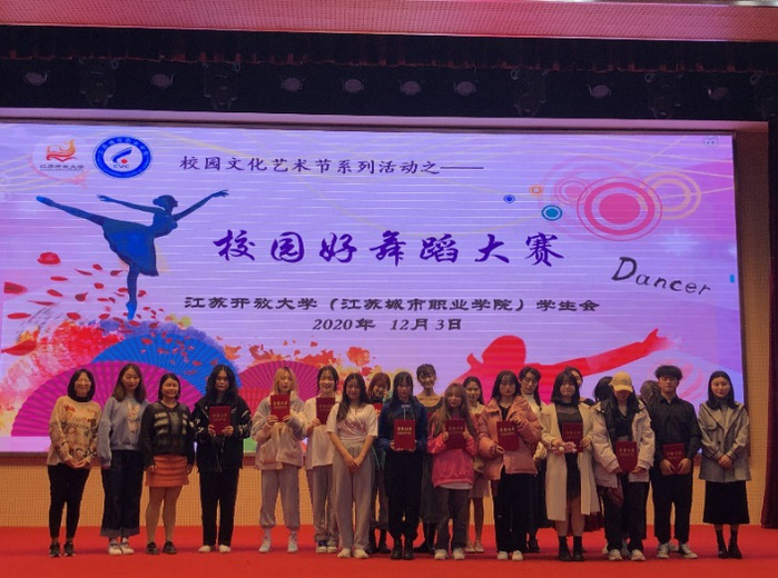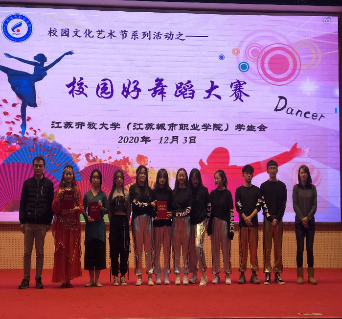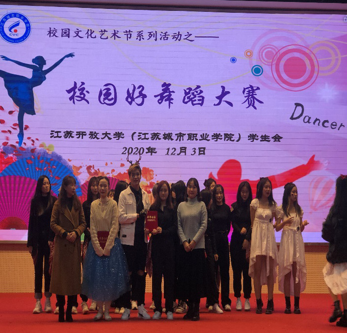 2020年12月3日18点30分,江苏开放大学(江苏城市职业学院)学生会主办的校园文化艺术节系列活动之校园好舞蹈大赛,在体艺馆406拉开帷幕。商学院团总支书记吴轲威、建筑工程学院团总支书记江蕾、艺术学院团总支书记何玉、信息工程学院团总支书记彭晓、环境生态学院团总支书记陈涛涛、校团委吴珊珊老师、校团委董安琪老师、校团委宋敏老师、设计学院孙晨老师担任此次比赛的评委。