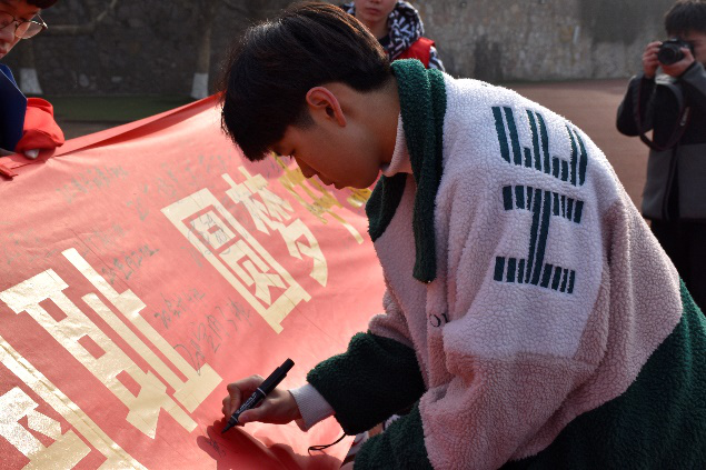 活动伊始,校学生会执行主席丁宇朗诵《公祭铭文颂》。通过回顾国家公祭日的历史来由,带领全体学生追溯悲壮历史,表达对死难者同胞的悼念以及对美好生活、时代和平的庄严祈愿。丁宇指出,全体青年学生要牢记历史,勿忘国耻,以史为鉴,砥砺前行,要坚定理想信念,树立远大目标,矢志艰苦奋斗,培育高尚品德,牢记“落后要挨打”的历史教训,积极投身实现中华民族伟大复兴的中国梦的新征程。