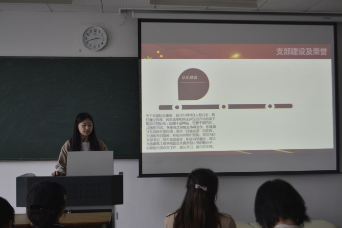 经过前期各团支部自荐、各团总支部的推选,本次遴选活动共有来自6个学院的6个团支部参加展示比赛。大家从团支部的政治学习、组织建设、团日活动、支部荣誉、作用发挥等方面进行详细的阐述与展示;最后团支部书记畅谈今后团支部建设的思路。本次参评的团支部通过图文并茂的PPT展示、丰富多彩的获奖成果、多样有趣的实践活动,展现了团支部建设成果和典型经验,带动更多基层团组织进一步突出政治功能、彰显组织活力,提升组织力、引领力、服务力和大局贡献度。