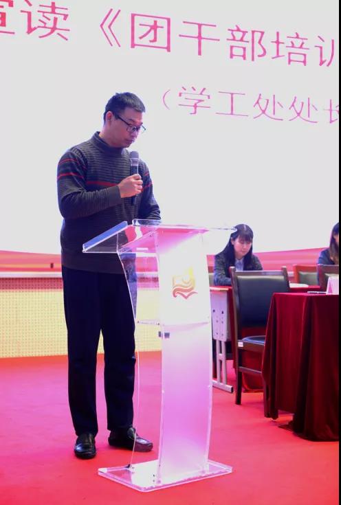 开班仪式在中华人民共和国国歌声中拉开序幕。学生工作部部长刘涛宣读《团干部培训班管理规定》。