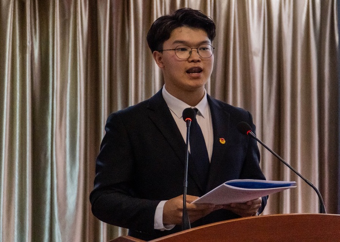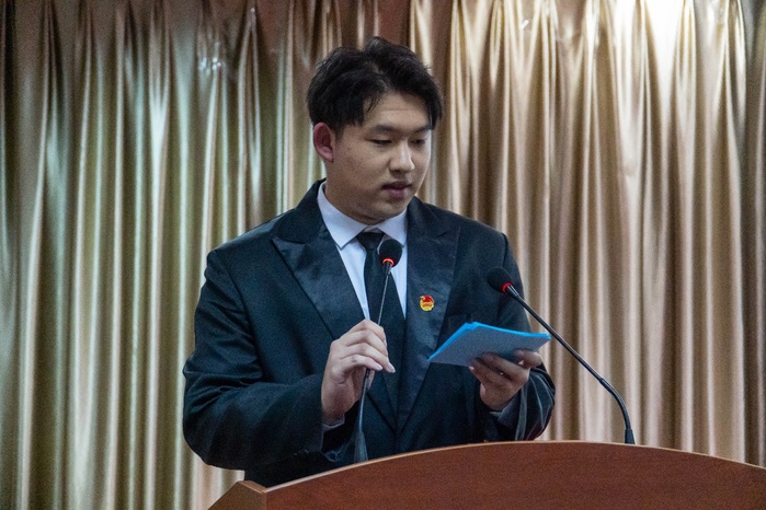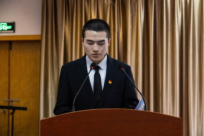 在嘹亮的国歌声中,拉开了本次预备会议的序幕。会上,校学生会主席团成员丁宇作了第二次筹备工作报告,向大家介绍了大会的筹备工作情况;校学生会主席团成员梁硕作了代表资格审查报告,向大家报告了本次大会的代表推选情况;校主席团成员姚雨辰宣读了本次大会的秘书长与选举工作人员建议名单;校学生会主席团成员郑家滨宣读大会选举办法(草案);校学生会主席团成员赵鹏宣读《第二次学代会的注意事项》;最后,代表们对第二次学代会正式会议的议程、大会主席团成员名单进行审议;在阵阵鼓掌通过中,代表们审议通过了各项议程和名单,在悠扬的团歌声中,预备会议圆满结束。