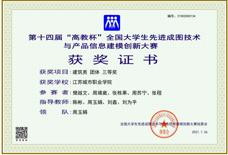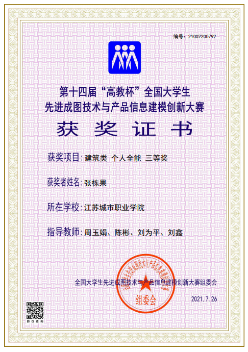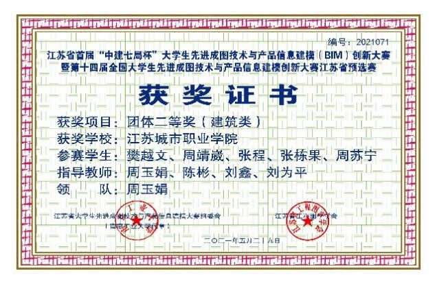 他所学的专业是建筑工程技术,需要勤学苦练专业知识,扎实磨练专业技能。他勤奋好学,善于求教,认真钻研,在班级的学业成绩和综合素质都排名第一。他不断精进CAD技能,积蓄能量参与各项竞赛,提升专业能力。2020年5月荣获第十届华东区大学生CAD技能竞赛个人二等奖、团体一等奖;2021年5月获得江苏首届“中建七局杯”团体二等奖;2021年6月获得第十一届华东区大学生CAD技能竞赛个人一等奖、团体二等奖;2021年7月获得第十四届“高教杯”全国大学生先进成图技术与产品信息建模创新大赛建筑类个人全能三等奖、团体三等奖。他还主持校级大学生创新训练计划项目外墙外保温裂缝防控技术研究,受到一致好评。
