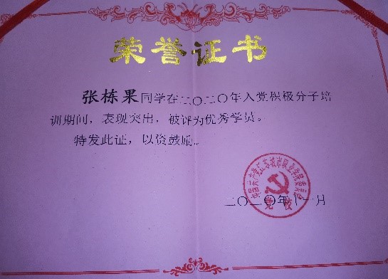 重返校园,我坚定理想信念,在思想上积极向党组织靠拢,主动学习习近平新时代中国特色社会主义思想,积极参与四史教育。大一期间,他被评为校优秀共青团员,并在入党积极分子培训中获得优秀学员荣誉。他深知想要成为一名党员,必须时刻严格要求自己,信念坚定、对党忠诚、实事求是、勇于担当,终于在2021年6月成为一名光荣的中共预备党员。