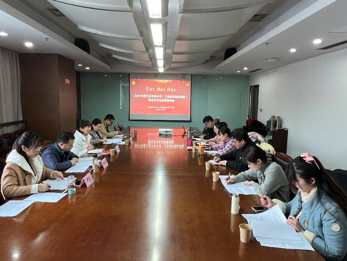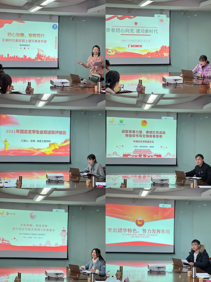 为深入贯彻落实习近平总书记关于青年工作的重要思想,全面贯彻党的十九届六中全会精神,切实推进全面从严治团,推动我校共青团的建设和工作落实落细,12月29日下午,校团委于定淮门校区二楼第三会议室召开2021年度团总支书记述职报告会,回顾总结一年来团学工作成效。校党委副书记、副校长金丽霞、宣传部部长季海菊、人事处处长冯国刚、党委学生工作部部长刘涛、校团委副书记尹星担任本次考核评委。会议由团委副书记尹星主持。