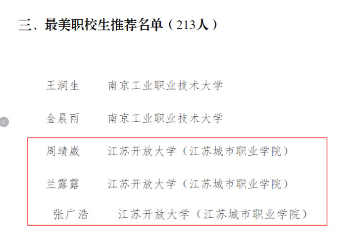 喜报频传!我校三名同学获得江苏省“最美职校生”荣誉称号