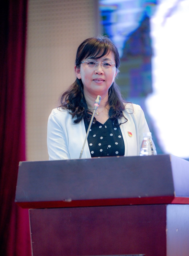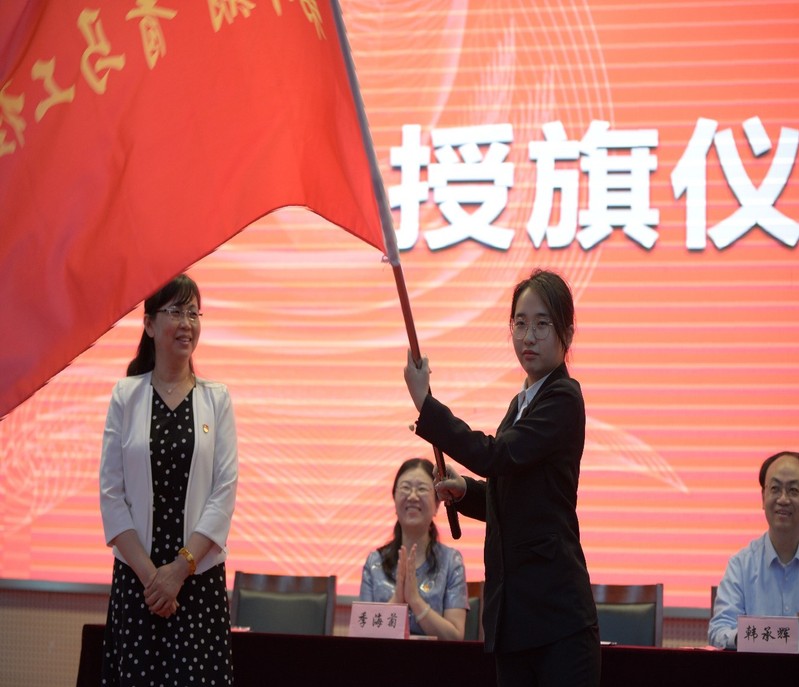 校党委副书记、副校长金丽霞为本期青马学员授旗。