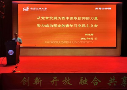 韩承辉以《从党章发展历程中汲取信仰的力量,努力成为坚定的青年马克思主义者》为题,从“学习党章的重要意义” “党章的发展历程” “党章发展的历史启示”等三个方面进行讲解。他表示,党章是我党的根本大法、是全党必须遵循的总规矩,学习党章、重温党章的发展历史,对坚定马克思主义信仰、共产主义信念、中国特色社会主义信心具有十分重要的意义。韩承辉结合史实,介绍了各个历史时期党章的发展历程。关于“党章发展的历史启示”,韩承辉结合我校共青团工作实际,就“如何提升团支部活力”提出三点建议,分别是“强化思想政治引领”“严格落实各项制度”和“创新活动开展方式”。最后,韩承辉要求大家进一步学习贯彻习近平总书记在庆祝中国共产主义青年团成立100周年大会上的重要讲话精神,不辜负党的殷切期望,砥砺前行,将青春奉献在党和人民最需要的地方。