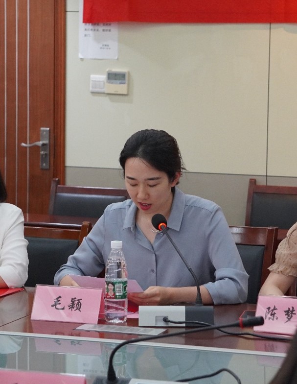 随后,建邺团区委副书记毛颖代表建邺团区委对我校长期以来的关心和支持表示了感谢。她表示,建邺团区委始终扎根区域特色,长期致力于做好青年就业创业工作,助力区域经济发展。此次双百项目将成为做好青年人才培养工作,为社会输送高质量人才,携手打造校地协同合作的典范的重要手段,双方将围绕共建校外实习实训实践基地、共同开志愿服务活动、引导大学生参与基层社会治理、推动毕业大学生留宁就业、共同服务大学生高质量就业和成果转化、共同开展课题研究等方面深入开展七项合作,更好地推动青年与城市共同发展成长。