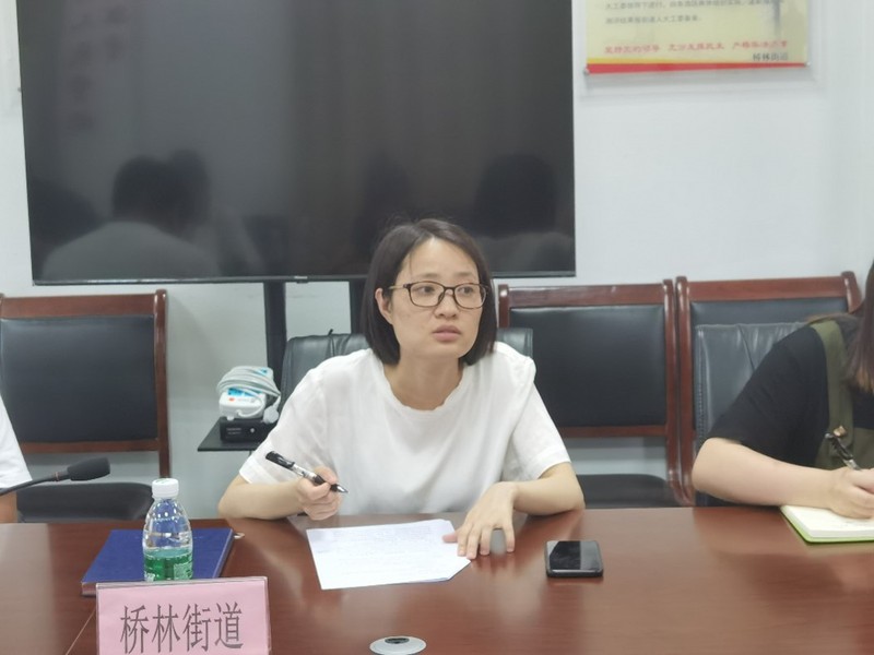 会上,包慧君介绍了我校今年暑期社会实践的方案,结合桥林本地需求,以“3+1助力乡村振兴”为主题,一方面发挥我校商务、设计、环保等专业优势,助力桥林的产业、文化、生态振兴,另一方面,通过文体活动、课后服务等志愿服务为空巢老人、留守儿童献爱心。桥林街道团工委书记杜娟对我校学生赴桥林街道实践服务表示了欢迎。随后,她介绍了桥林街道各社区情况,对我校的实践方案进行了可行性和重难点分析,并根据双方实践需求与我校共同确定了实践形式、内容和地点等内容。
