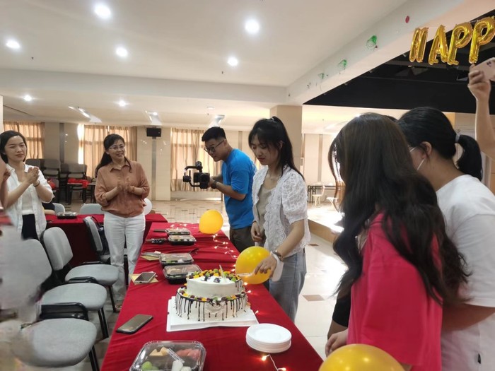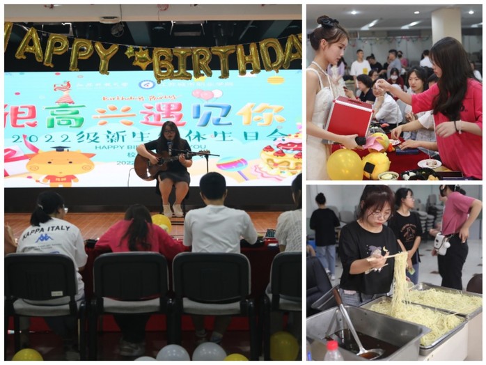 傍晚,校学生会还为当天生日的4名新生同学举办“很高兴遇见你”集体生日会。我校党委副书记、副校长金丽霞老师,宣传部、学工处、团委、各学院的老师以及学生会的同学们相聚在一起为他们庆生。除了唱生日歌、吹蜡烛、吃长寿面等必不可少的环节外,金书记还给小寿星们送上了祝福与生日礼包,热情的学长学姐们还准备了精彩的节目表演。此外,生日会现场还设置了抽奖环节,金书记和寿星们将这份惊喜传递给了更多的人,让大家一起分享这份祝福与感动。