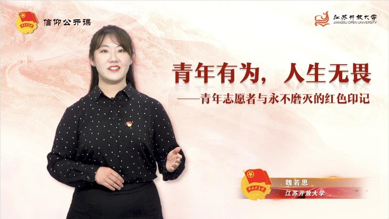 魏若思老师以“青年有为,人生无畏”为主题,从我校的青年志愿者事迹、青年志愿者所具备的优秀品质、革命者也是志愿者、志愿者的代表色是红色四个角度来为大家带来我国青年志愿者那永不磨灭的红色印记,课程最后,魏老师用鲁迅先生的话来鼓励大家积极奉献:愿中国青年都摆脱冷气,能做事的做事,能发声的发声,有一份热,发一份光。