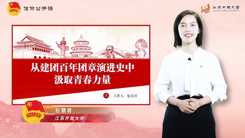 包慧君老师着眼“团章”,以“从建团百年团章演进史中汲取青春力量”为主题,从团章的演变历史、新时代展望以及团章演进的启示三个方面带领大家走进团章、汲取力量。课程最后,包慧君老师借用习近平总书记的话来勉励大家:实现中国梦是一场历史接力赛,当代青年要在实现民族复兴的赛道上奋勇争先。并呼吁青年朋友们踔厉奋发、勇毅前行,奋力书写青春篇章,以实际行动迎接党的二十大胜利召开。