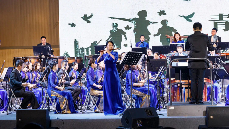《五四之光》是新民主主义革命的号角,《觉醒》是爱国青年在民族危亡时刻的呼声。《青春似火》以悲壮急迫的音乐场面作为开端,青年竹笛演奏家孟诗文和乐队一起用小快板,歌颂了新时代青年们艰苦奋斗投身祖国建设的精神风貌。《从头越》运用了宋词的结构关系,上阙是追忆奋斗历程的艰难险阻的“所思”,下阕是抒发从头越的豪情壮志的“所感”。唢呐协奏曲《青春随想》展现了当代青年的自信豪迈,著名唢呐演奏家隋景宏的一段独奏炫技点燃了在场观众的激情。青年古筝演奏家徐畅带来的《百年芳华》,用细腻的古筝语汇,谱写了百年来永恒与巨变,沧桑与繁华,古老与青春。《薪火》运用了复调织体,象征了薪火相传,绵延不息的精神。最后,《新纪元》将整场音乐会推向了高潮,新时代、新面貌、新精神都被融汇在这曲民族交响之中。