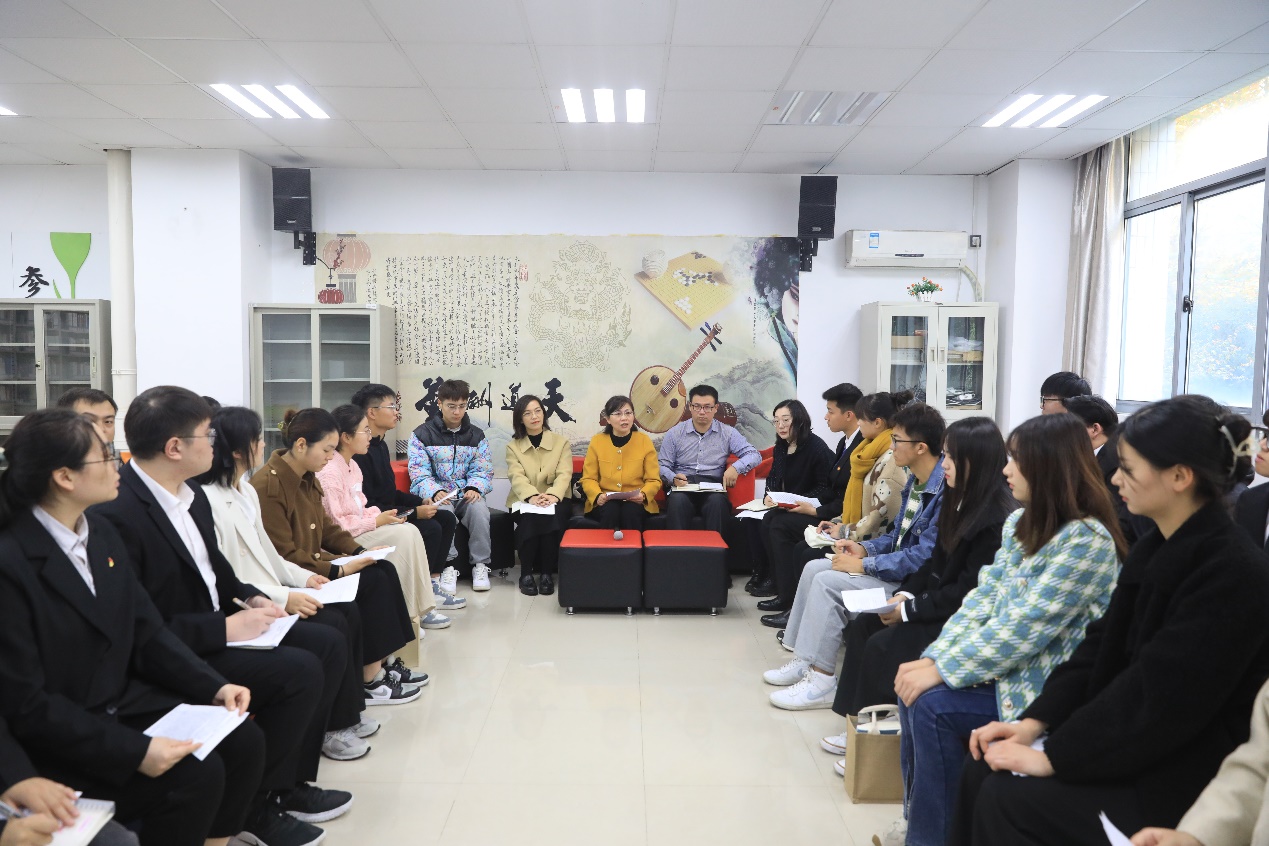 为深入学习宣传贯彻党的二十大精神,切实把全校广大青年学生的思想和行动统一到党的二十大精神上来, 11月24日上午,我校在应天校区图书馆一楼召开“学习二十大 永远跟党走 奋进新征程”团学青年学习交流座谈会,校党委副书记、副校长金丽霞出席并讲话,学生工作部部长刘涛、部分学院党总支部副书记、团总支部负责人、教工团支部书记以及团学骨干代表参加,座谈会由校团委书记包慧君主持。
