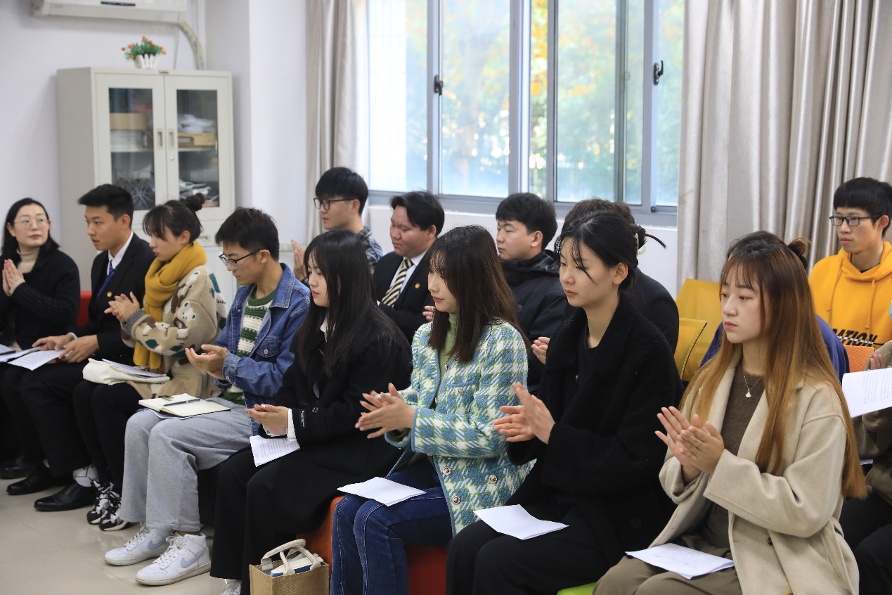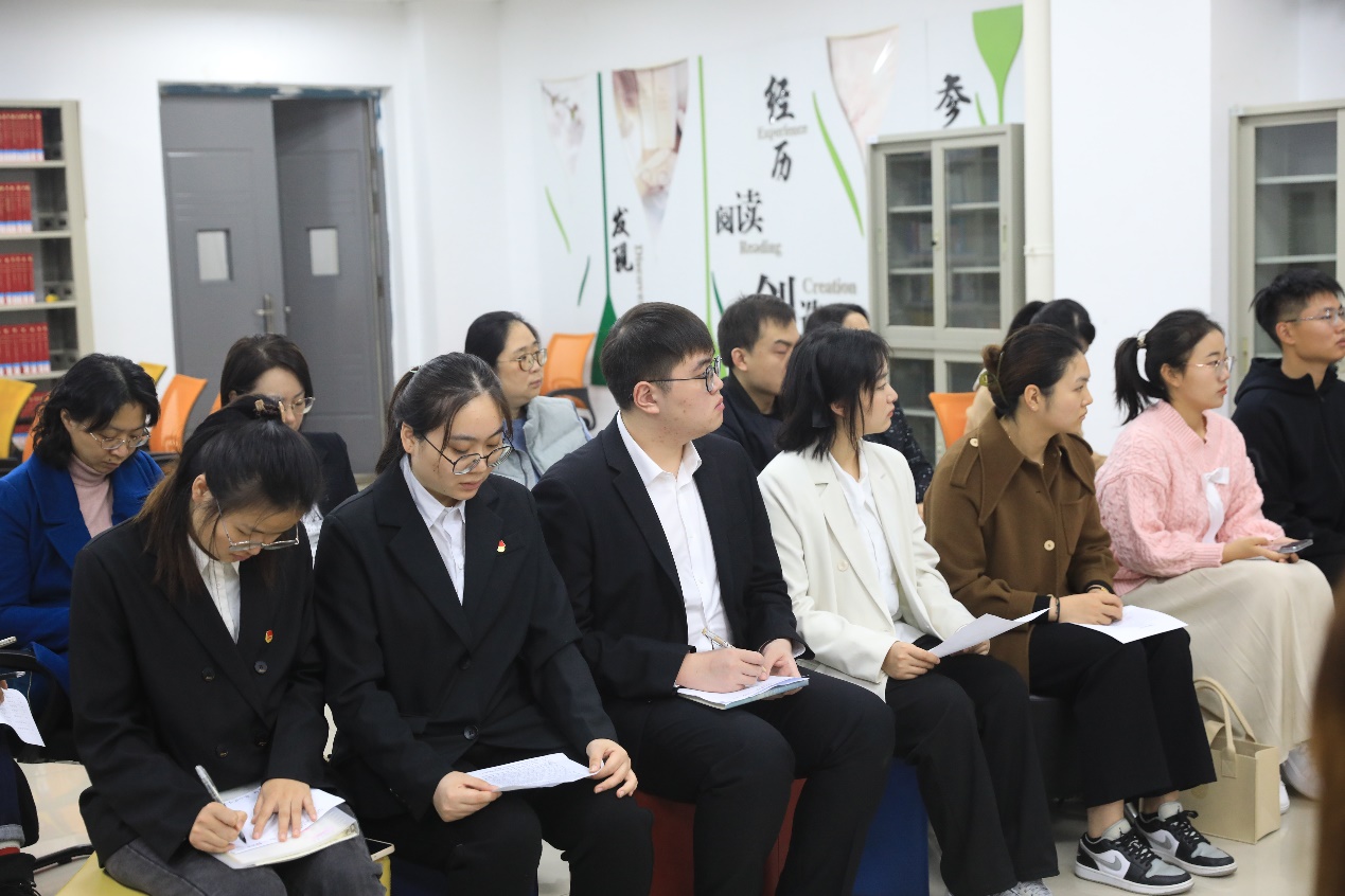 青年师生代表结合自身学习与工作情况分享了党的二十大精神的学习感悟。教工团支部书记陈冰月带领教工团支部第一时间开展了党的二十大精神的学习,结合工作实际她觉得青年教职工要把握高质量发展机遇,汲取高质量发展动能,以钉钉子的精神,啃最硬的骨头,争做高质量发展先锋。建筑工程学院姜静达同学是一名退伍士兵、优秀团员、入党积极分子,他用自身奋斗的经历证明幸福源自奋斗,奋斗才会成功,所有的成绩都是靠脚踏实地、一点一滴干出来的,他将会继续朝着自己梦想,不怕苦,勇担当,做新时代的奋进者、开拓者、奉献者。建筑工程学院许钟雪同学从小的梦想就是为家乡修一条水泥路,在学习完党的二十大报告后她深有感触,觉得学生干部应该要有创新精神,奋斗精神,真干实干,带动身边的同学一起进步,为家乡建设做更多的贡献! 信息工程学院韩东旭同学说,作为校学生会主席团成员,他将以党的二十大精神为指引,时刻牢记使命,拿出逢山开路、遇水架桥的冲劲、闯劲和拼劲,以更加饱满的姿态、昂扬的斗志服务同学,做一个有作为、有斗志的青年人!信息工程学院郑悦同学是班长、团小组长,她说:“我会认真学习贯彻党的二十大精神,并且通过团小组政治学习、班团活动带领同学们学起来、干起来,一起奋楫扬帆,阔步前行!”环境生态学院石容远同学说:“党的二十大报告给了我极大的鼓舞和激励,习近平总书记的寄语更是让我深刻认识到身为当代青年的使命与责任,我会把个人学习与服务同学相结合,在平凡的生活中打造非凡的我们。”艺术学院赵学蒙同学说,“她学习完党的二十大精神后备受鼓舞,她觉得青年应该坚守初心、锤炼匠心、凝聚民心、坚定信心,作为一名团支部书记,她会全心全意为同学服务,想同学之所想,急同学之所急,把‘我为同学做实事’落实到今后的各项工作当中。”