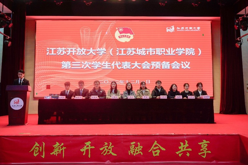 12月1日下午,江苏开放大学(江苏城市职业学院)第三次学生代表大会预备会议在应天校区体艺馆406顺利召开。校团委全体成员、各学院团总支部负责人以及我校95名学生代表参加本次会议。会议由校学生会主席团成员董启诚主持。