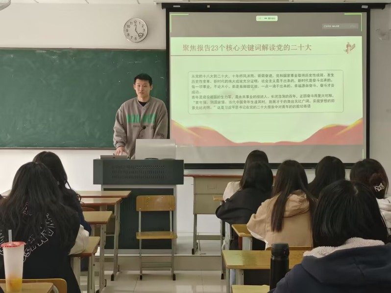 为深入学习贯彻党的二十大精神,加强校学生会成员的思想建设,充分发挥学生干部先锋模范作用,我校校学生会团支部于2023年3月28号中午在应天校区教学楼210教室组织开展党的二十大精神专题学习会,本次学习会的主讲人为校学生会团支部书记姜静达。校学生会指导老师潘宁和校学生会全体成员参加会议,东校区的成员线上参会。