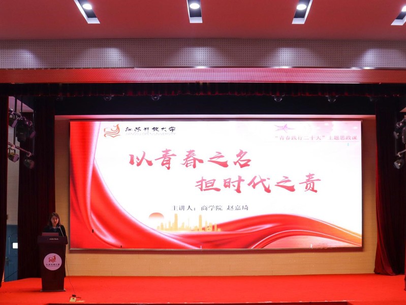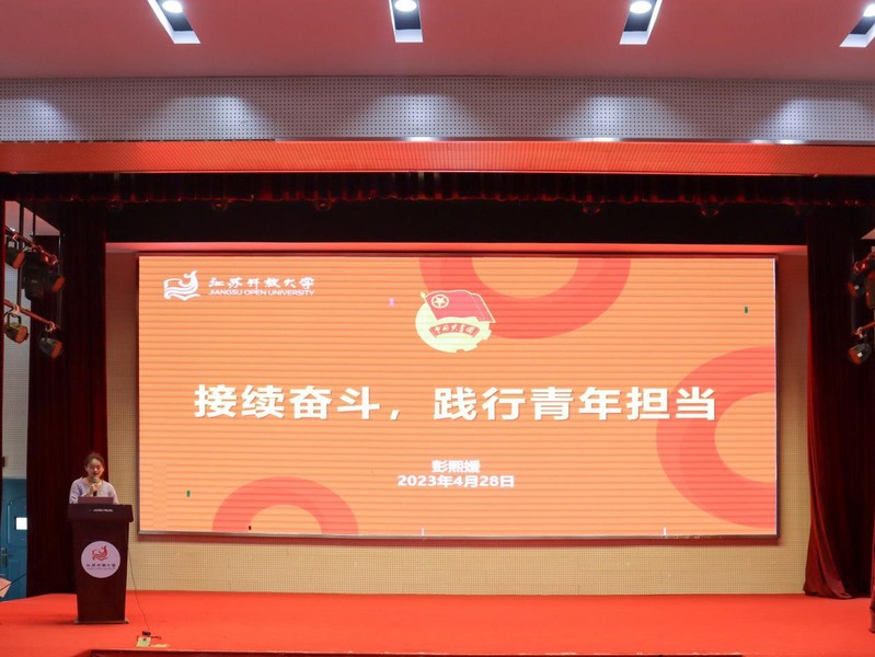 彭熙媛以“接续奋斗,践行青年担当”为主题,从“鉴往知来,不忘青年突击队初心”“砺行致远,深化新时代青年突击队工作”“融入时代,共创江苏开大青年突击队精神”三个方面为大家讲述青年突击队的故事。彭老师用不同时代青年突击队成员的案例,向大家展示这支“最积极、最有生气、最肯学习、最少保守思想”的队伍,并号召我校同学们以此为榜样,继承发扬好青年突击队精神,不断提升志愿服务质效。
