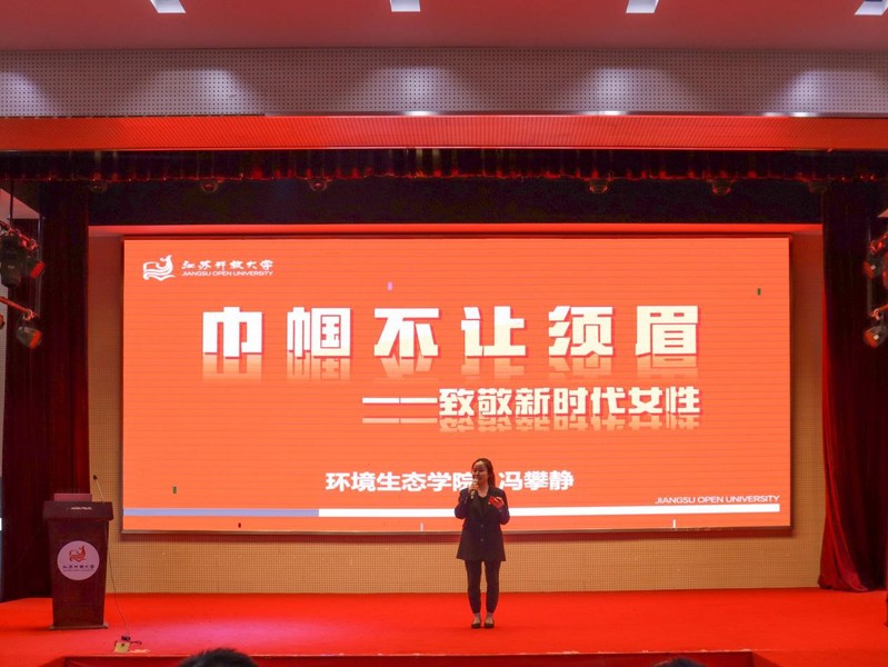 冯攀静以“巾帼不让须眉——致敬新时代女性”为主题,分别选取了“大山深处的梦想缔造者张桂梅”“扶贫路上的青春奉献者黄文秀”“江苏大地最美代言人江开人”三个典型向大家展示“巾帼精神”。冯老师引用习近平总书记对广大青年的寄语“青春由磨砺而出彩,人生因奋斗而升华”号召同学们向每一位默默耕耘奉献的巾帼们致敬,为每一位新时代的青春奋斗者献礼。