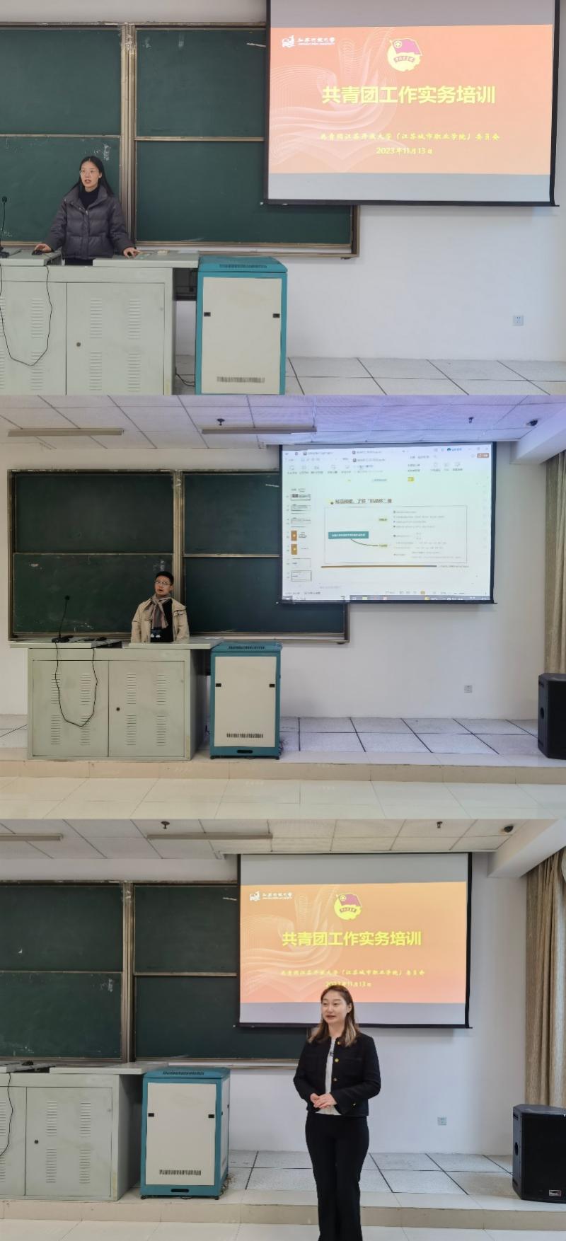 11月13日中午,我校2023年新生团干部培训班第三课于应天校区教学楼203教室顺利开讲,校团委潘宁、冯帅和董安琪老师为大家讲解基层团支部工作实务,团干部培训班全体学员参加。