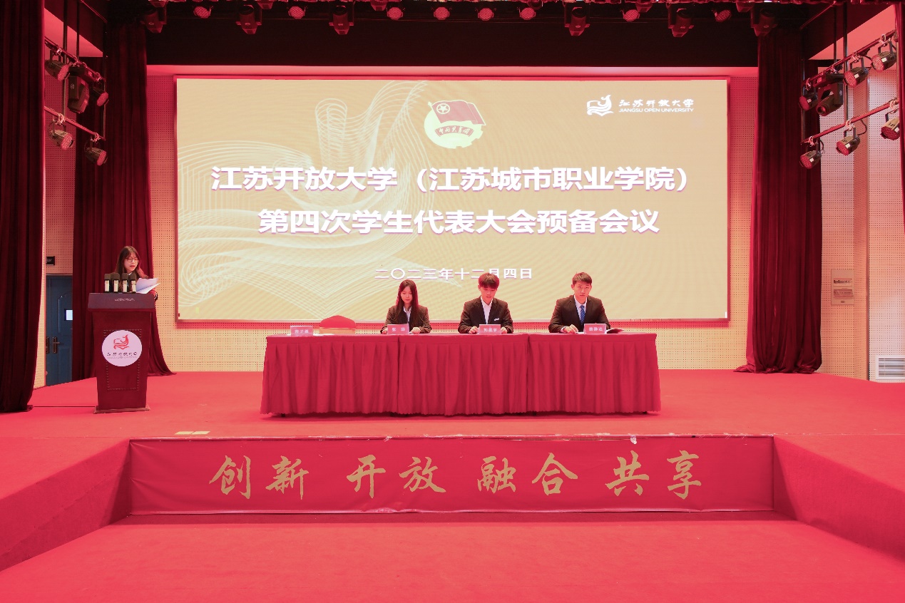12月4日下午,江苏开放大学(江苏城市职业学院)第四次学生代表大会预备会议在应天校区体艺馆406顺利召开。校学生会主席团成员以及我校80名学生代表参加本次会议。会议由校学生会主席团成员蒋子翌主持。