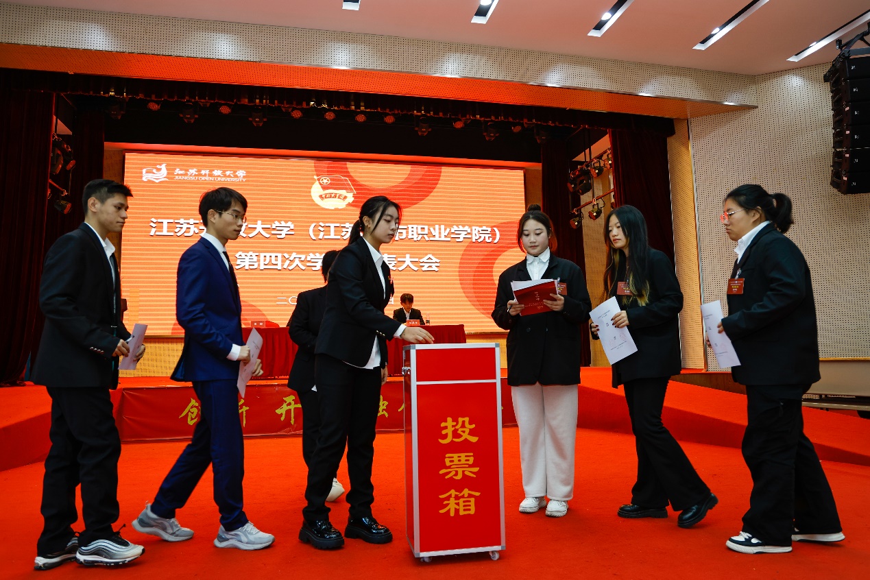 12月5日上午,江苏开放大学(江苏城市职业学院)第四次学生代表大会在应天校区体艺馆406召开,校党委常委、副校长罗逾兰、江苏省学生联合会驻会执行主席贝光耀、校党委常委、组织部部长胡大华、校党委常委、宣传部部长杨濯、学生工作部部长刘慧英、团委书记包慧君、南京工业大学学生会主席团成员李婉、团委、各学院党总支负责人、团委委员及88位代表共同出席本次大会。大会由校学生会主席团成员张璐同学主持。