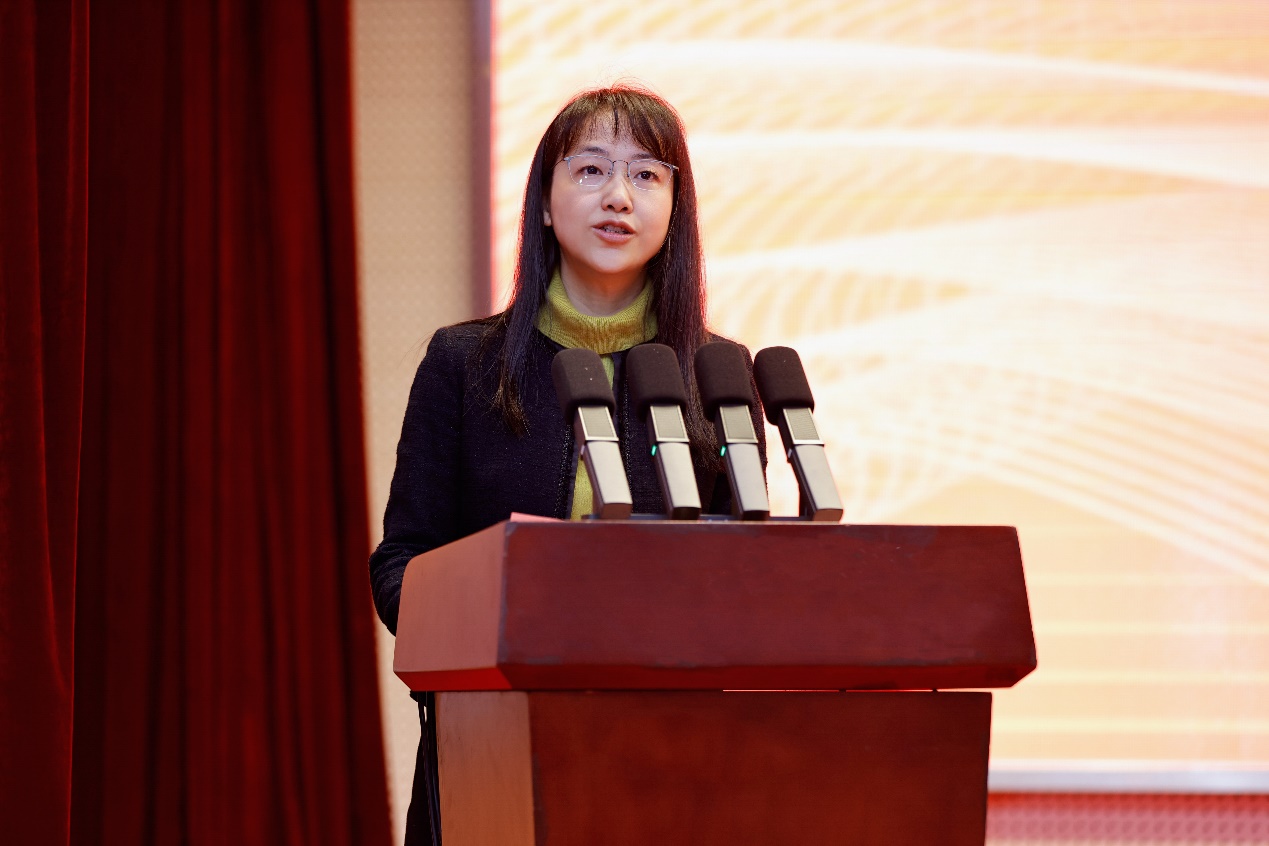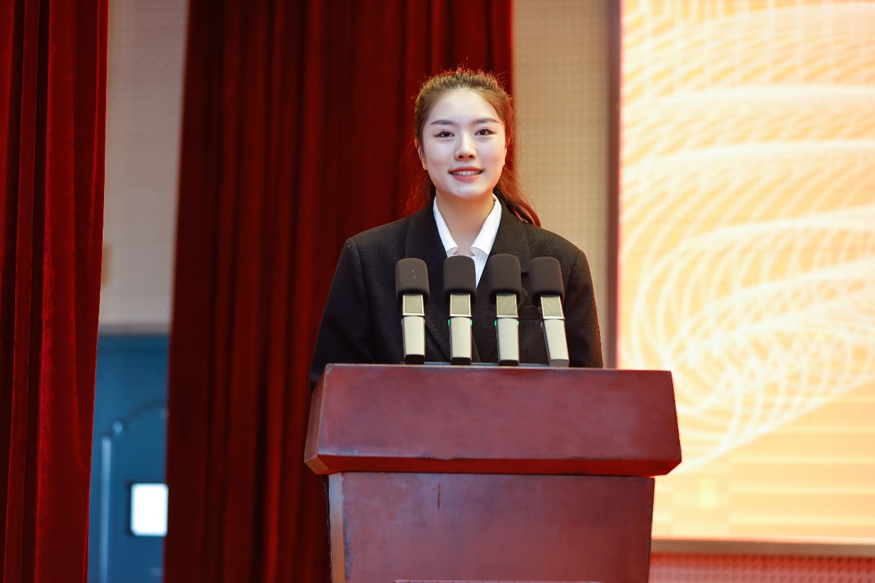 南京工业大学学生会主席团成员李婉向大会致贺词。李婉作为兄弟院校代表向我校学代会的召开表示热烈的祝贺,她坚信本次选举产生的新一届学生委员会及学生会主席团成员一定能继续以奋发的斗志、昂扬的精神、务实的作风取得更加辉煌的青春业绩,为建设高水平开放大学和同学的成长成才做出更大的贡献。