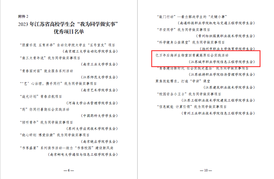 近日,我校信息工程学院学生会的“亿万年后海洋生物重回青藏高原社会实践活动”项目入选江苏高校学生会、研究生会优秀项目。江苏省学生联合会开展的“我为同学做实事”项目展示评选活动以“学思想·做实事·树新风”为主题,共有172个校级推报项目。涵盖思想引领类、学业促进类、就业创业类、社会实践类、心理健康类、民族团结类、助困帮扶类、校园治理类、文体活动类及其他类共10个类别。接下来,我校“亿万年后海洋生物重回青藏高原社会实践活动”项目将在江苏省学生联合会公众平台上推出展示。