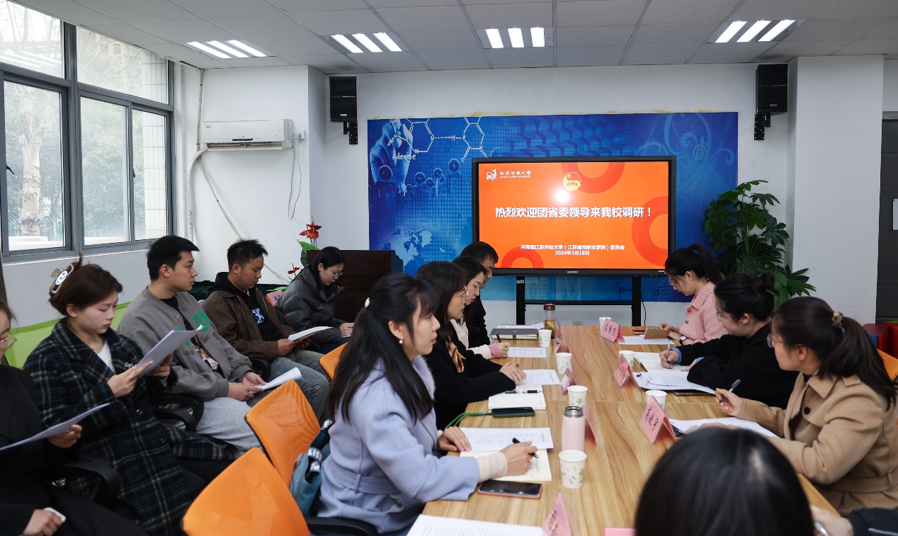 3月18日上午,团省委高校部高晓宇,江苏省学联驻会执行主席王潇苒一行深入我校调研指导共青团工作。我校团委领导班子,团委委员,二级学院团总支负责人,团委工作人员以及4位学生代表参加座谈会。